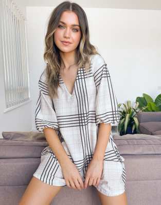 ASOS DESIGN - Tekstureret swing-minikjole i cremehvide og sorte tern