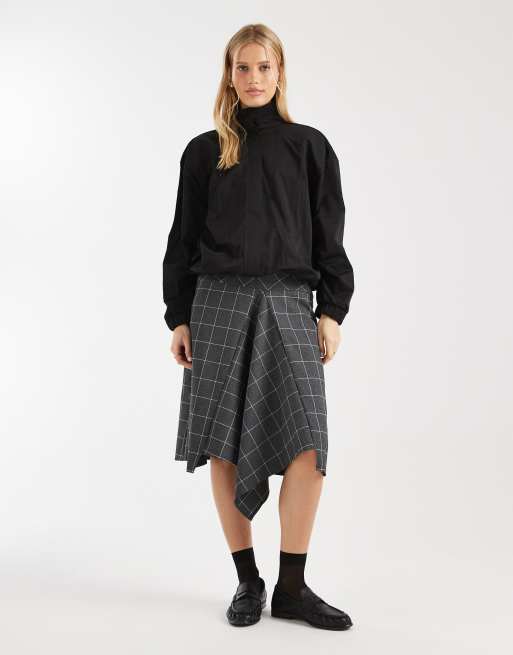 ASOS DESIGN - Ternet 90'er-midinederdel med sænket sømkant