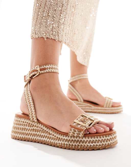 ASOS DESIGN - Thermo - Gyldenbrune og vævede fladformsandaler med spænde