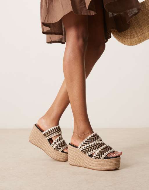 ASOS DESIGN - Thistle - Sorte og naturfarvede mules med kilehæl og piskesting