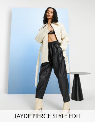 ASOS DESIGN tilspidsede bukser med læderlook