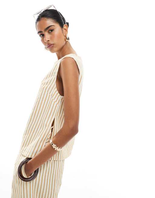 ASOS DESIGN - Top med bindebånd i siden og brune striber i bæk-og-bølge-stof - Del af sæt