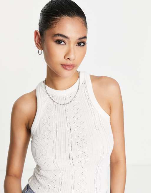 ASOS DESIGN - Top med racerryg i ecru pointelle
