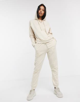 ASOS DESIGN - Træningssæt med hættetrøje / slim joggingbukser med bindebånd i bomuld i creme