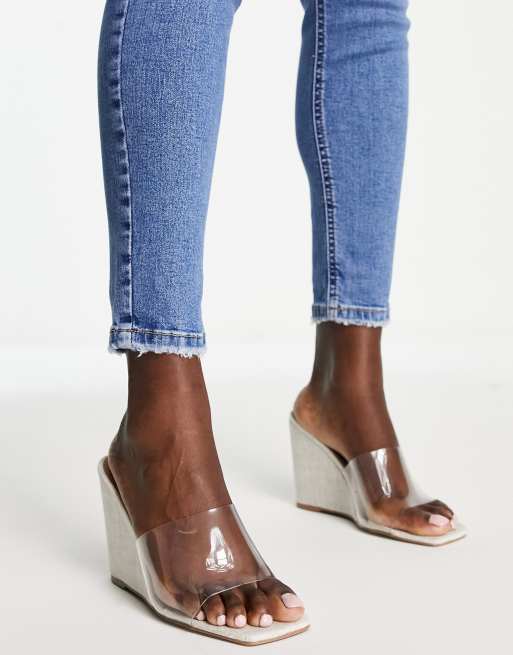 ASOS DESIGN - True - Høje mules med kilehæl i gennemsigtig og naturfarvet