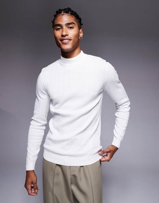 ASOS DESIGN - Tætsiddende hvid T-shirt i ribstrik med lange ærmer og rullekrave
