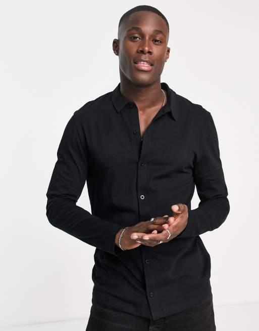 ASOS DESIGN - Tætsiddende langærmet skjorte i sort jersey - BLACK