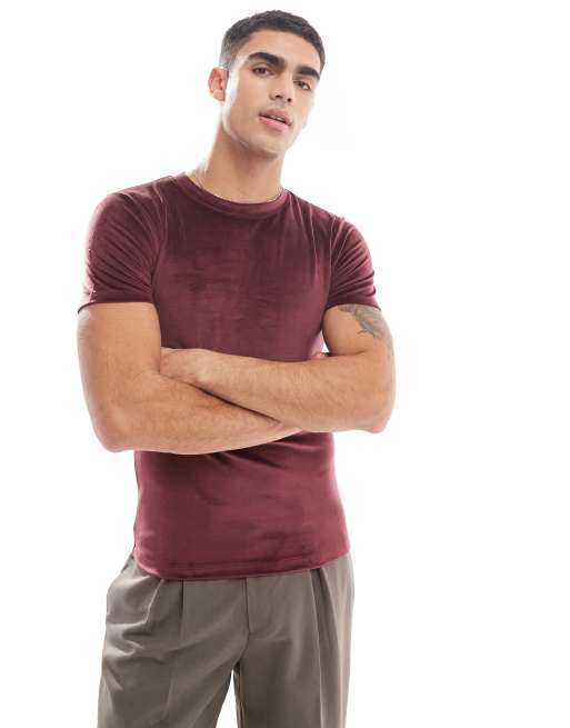 ASOS DESIGN - Tætsiddende og bordeauxrød T-shirt i velour
