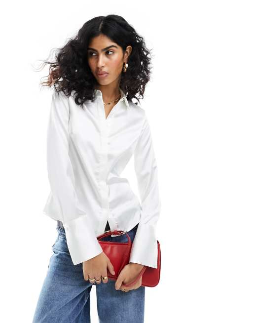 ASOS DESIGN - Tætsiddende og hvid slim-skjorte i satin