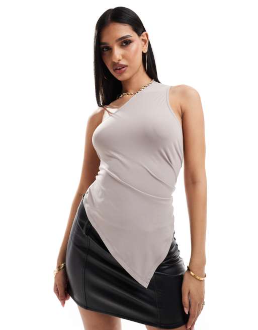 ASOS DESIGN - Tætsiddende oneshoulder-top med stropper i savmpefarve