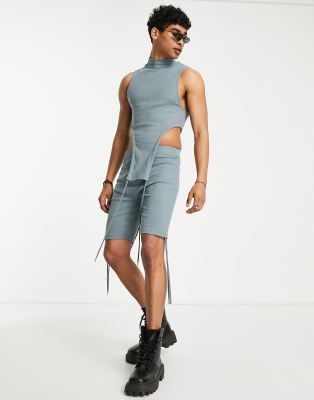 ASOS DESIGN - Tætsiddende overdel i blå ribstrikket skaterstil med løbesnore - Del af sæt