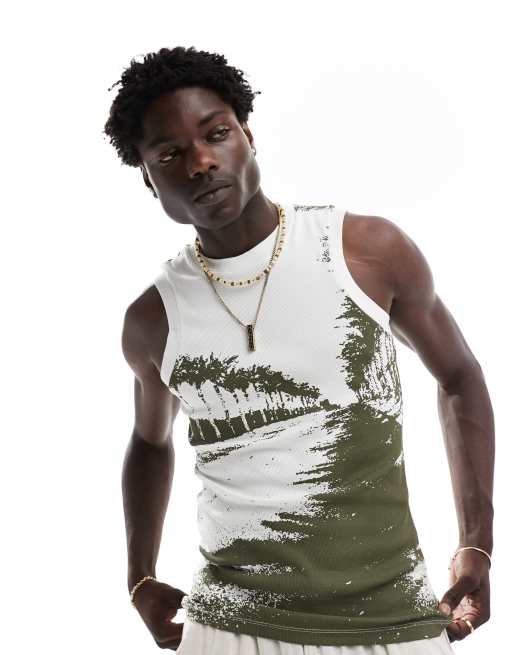 ASOS DESIGN - Tætsiddende overdel med gennemgående landskabsprint
