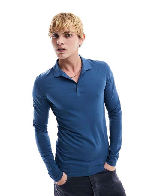 ASOS DESIGN - Tætsiddende polotrøje i blå med lange ærmer