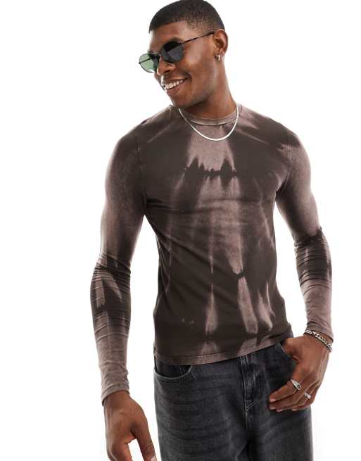 ASOS DESIGN - Tætsiddende T-shirt med lange ærmer i vasket brun