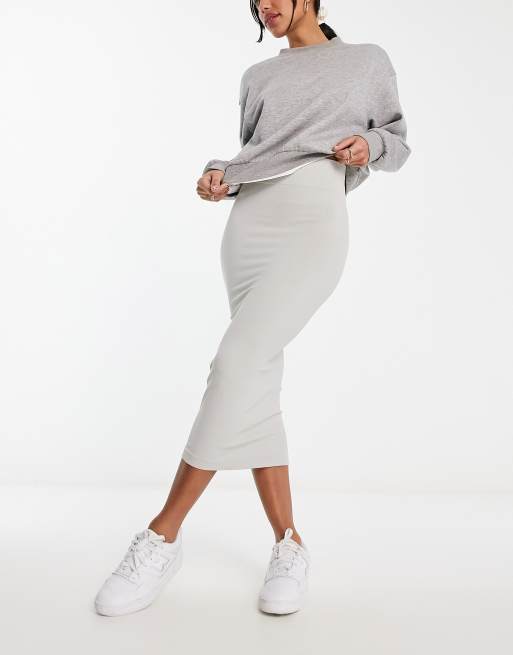 ASOS DESIGN - Tubeformet, sømløs midinederdel i skifergrå