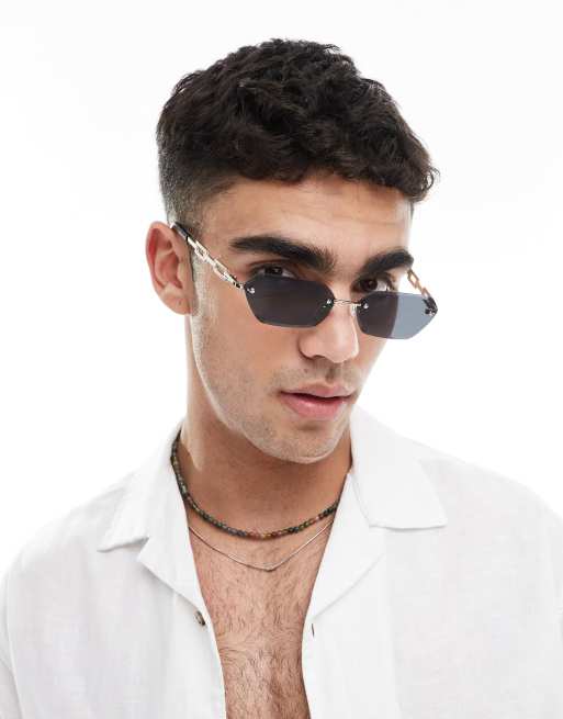 ASOS DESIGN - Uindfattede solbriller med røgfarvede rektangulære glas og guldfarvet metalstel