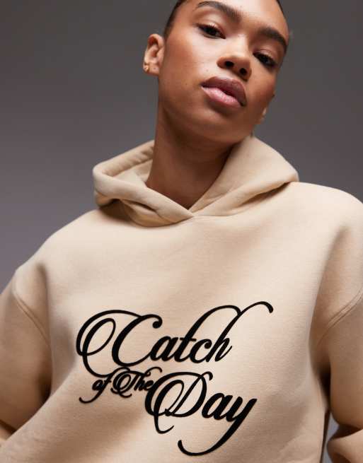 ASOS DESIGN - Ultimate - Oversized beige hættetrøje med sloganprint