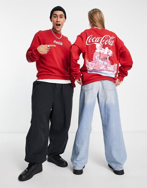 ASOS DESIGN - Unisex - Afslappet sweatshirt med juleinspireret 'Coca Cola'-print i rød