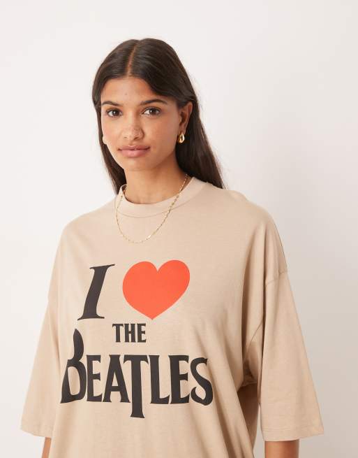 ASOS DESIGN - Unisex - Beige oversized T-shirt med The Beatles-print