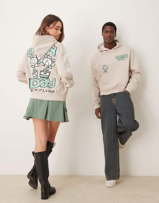 ASOS DESIGN Unisex - Grå oversized hættetrøje med Green Day-print i firkantet pasform