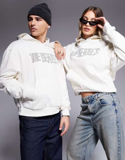 ASOS DESIGN - Unisex - Offwhite oversized hættetrøje med licenseret The Beatles-print
