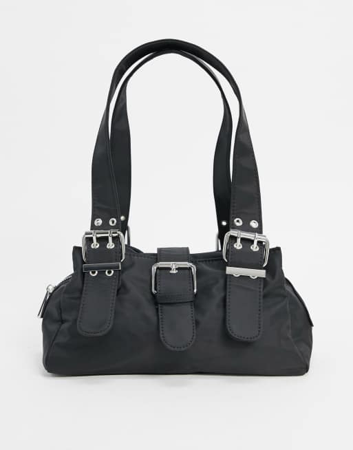 ASOS DESIGN - Utility-skuldertaske med spænder i sort nylon