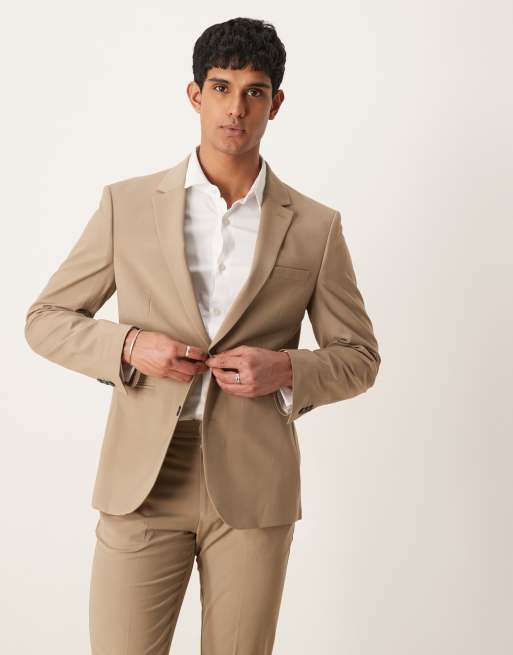 ASOS DESIGN - Vaskbar beige slim-habitjakke i let kamgarnsuld-blanding