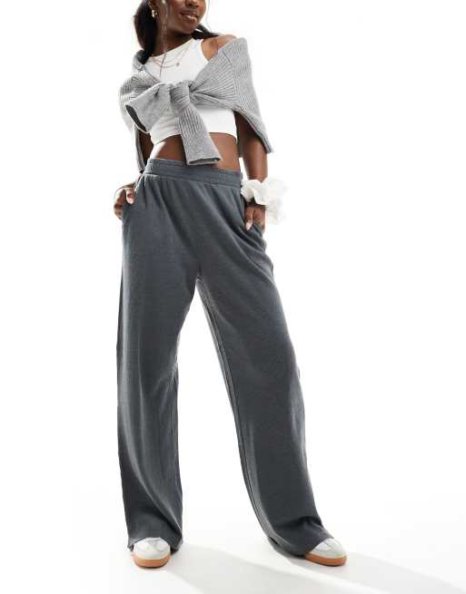 ASOS DESIGN - Vasket koksgrå bukser med vaffeltekstur og vide ben