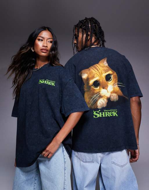 ASOS DESIGN - Vasket sort oversized unisex-T-shirt med 'Shrek Puss in Boots'-print
