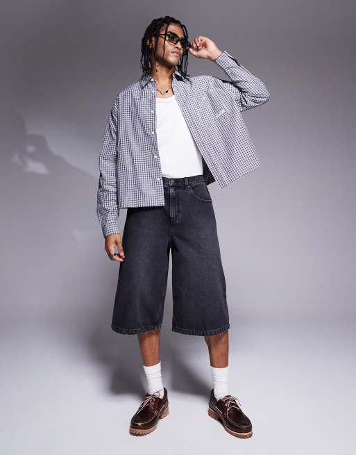 ASOS DESIGN - Vasket sorte jorts i denim i længere længde