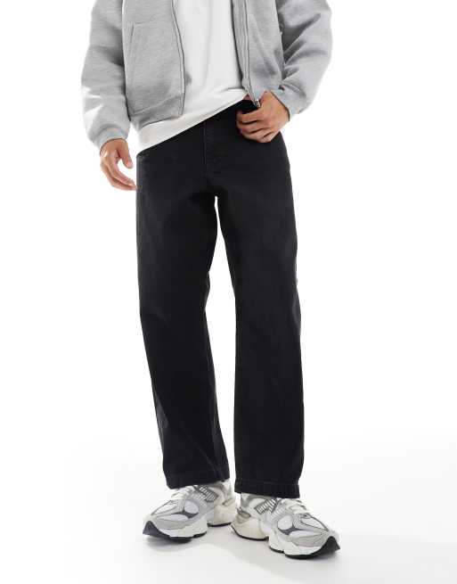 ASOS DESIGN - Vasket sorte løstsiddende jeans med lige ben