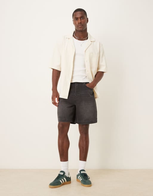 ASOS DESIGN - Vasket sorte mellemlange jorts i denim