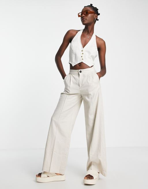 ASOS DESIGN - Vest med halterneck og hornknapper i råhvid hør