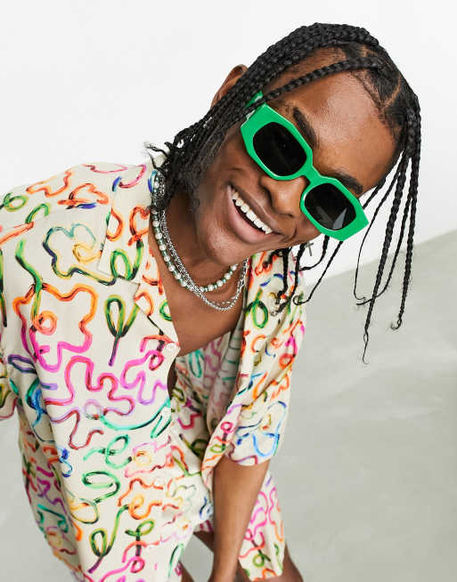 ASOS DESIGN - Vinklede, firkantede solbriller med røgfarvede glas og grønt stel
