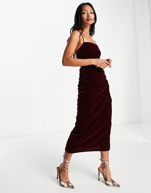 ASOS DESIGN - Vinrød midikjole i velour med rygsnører