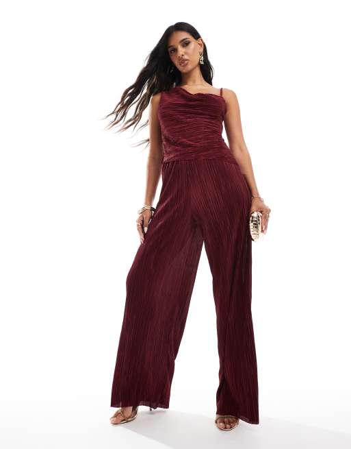 ASOS DESIGN - Vinrødt plisserent sæt med asymmetrisk top med drapeing og bukser