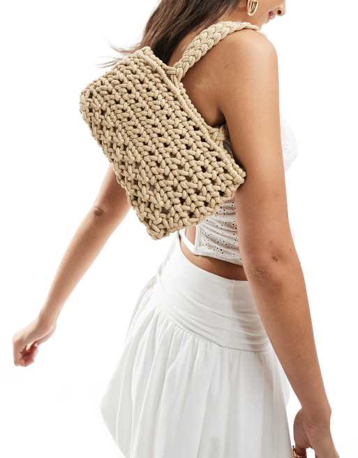 ASOS DESIGN - Vævet sandfarvet håndtaske med løbesnor-lukning