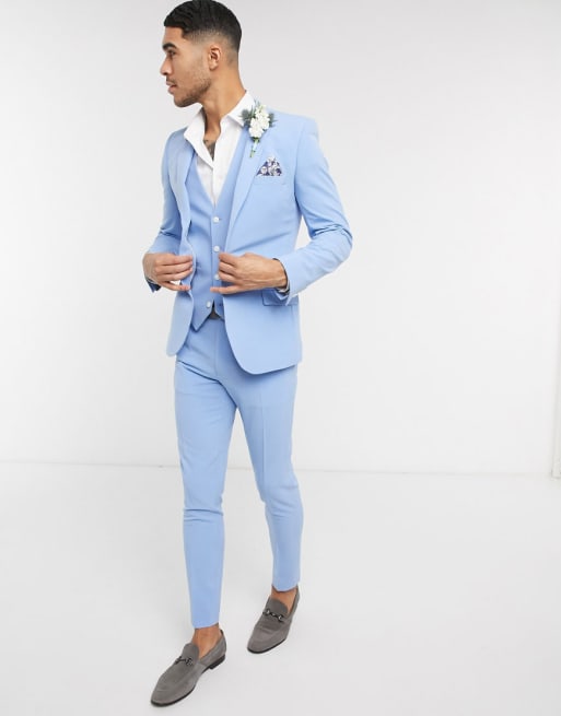 ASOS DESIGN wedding — Azurblåt jakkesæt med firevejsstræk og ekstra smal pasform