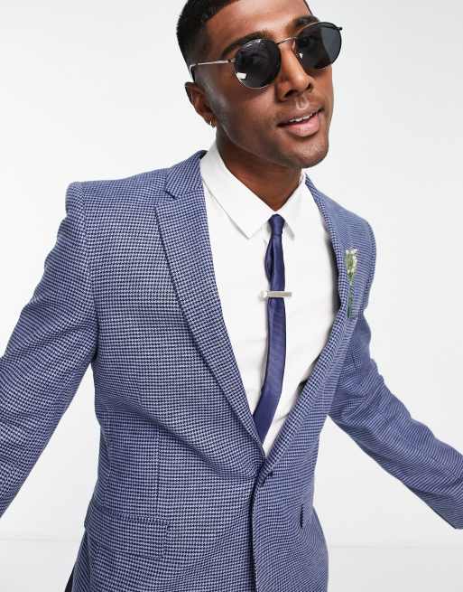 ASOS DESIGN Wedding - Blå super skinny-habitjakke i hør med pepitatern
