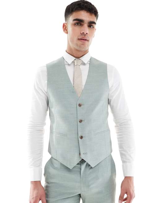 ASOS DESIGN Wedding - Grøn skinny-habitvest med tekstur
