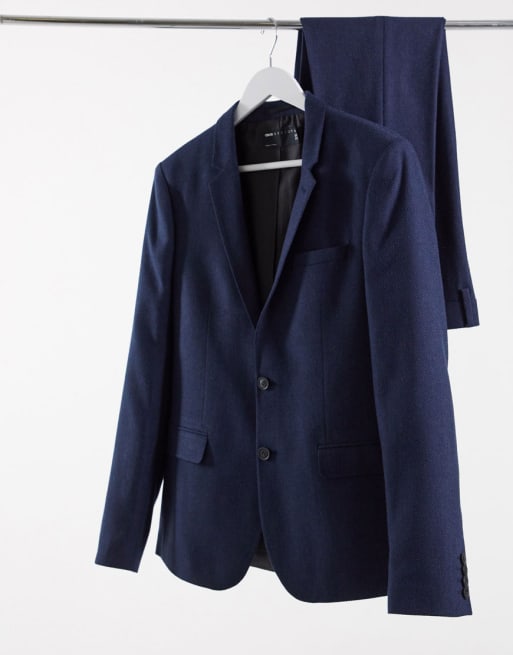 ASOS DESIGN Wedding - Jakkesæt i navy silkebensmønster