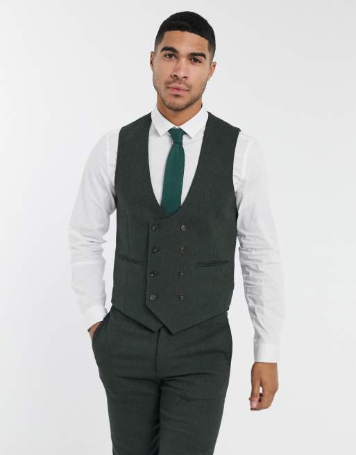 ASOS DESIGN wedding - Kakifarvet super skinny habitvest i uldblanding og twill