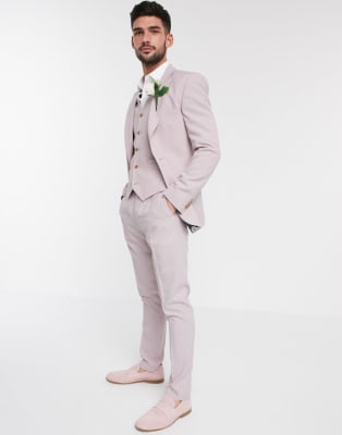 ASOS DESIGN wedding — Lyserødt jakkesæt med tern og smal pasform