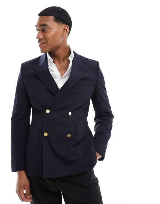 ASOS DESIGN Wedding - Marineblå skinny-blazer med guldfarvede knapper