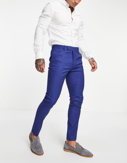 ASOS DESIGN Wedding - Marineblå super skinny-habitbukser i hørblanding
