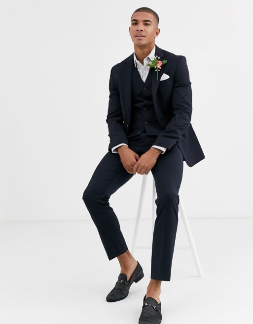 ASOS DESIGN — Wedding — Marineblåt uldsæt med smal pasform
