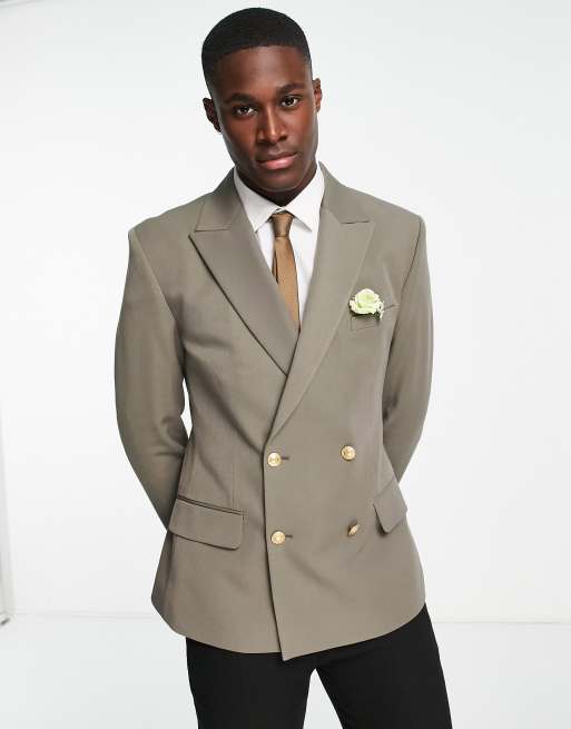ASOS DESIGN Wedding - Olivengrøn skinny-blazer med gyldne knapper