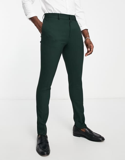ASOS DESIGN Wedding - Skovgrønne smalle habitbukser med mikro-tekstur