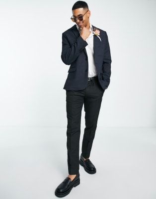 ASOS DESIGN Wedding - Super skinny-jakkesæt i mørk marineblå mikrotekstur