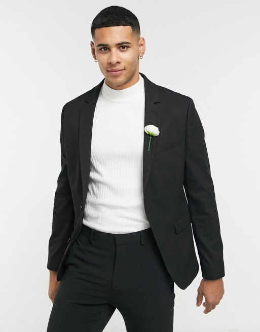 ASOS DESIGN Wedding - Super Skinny-jakkesæt i sort stof med mikrotekstur